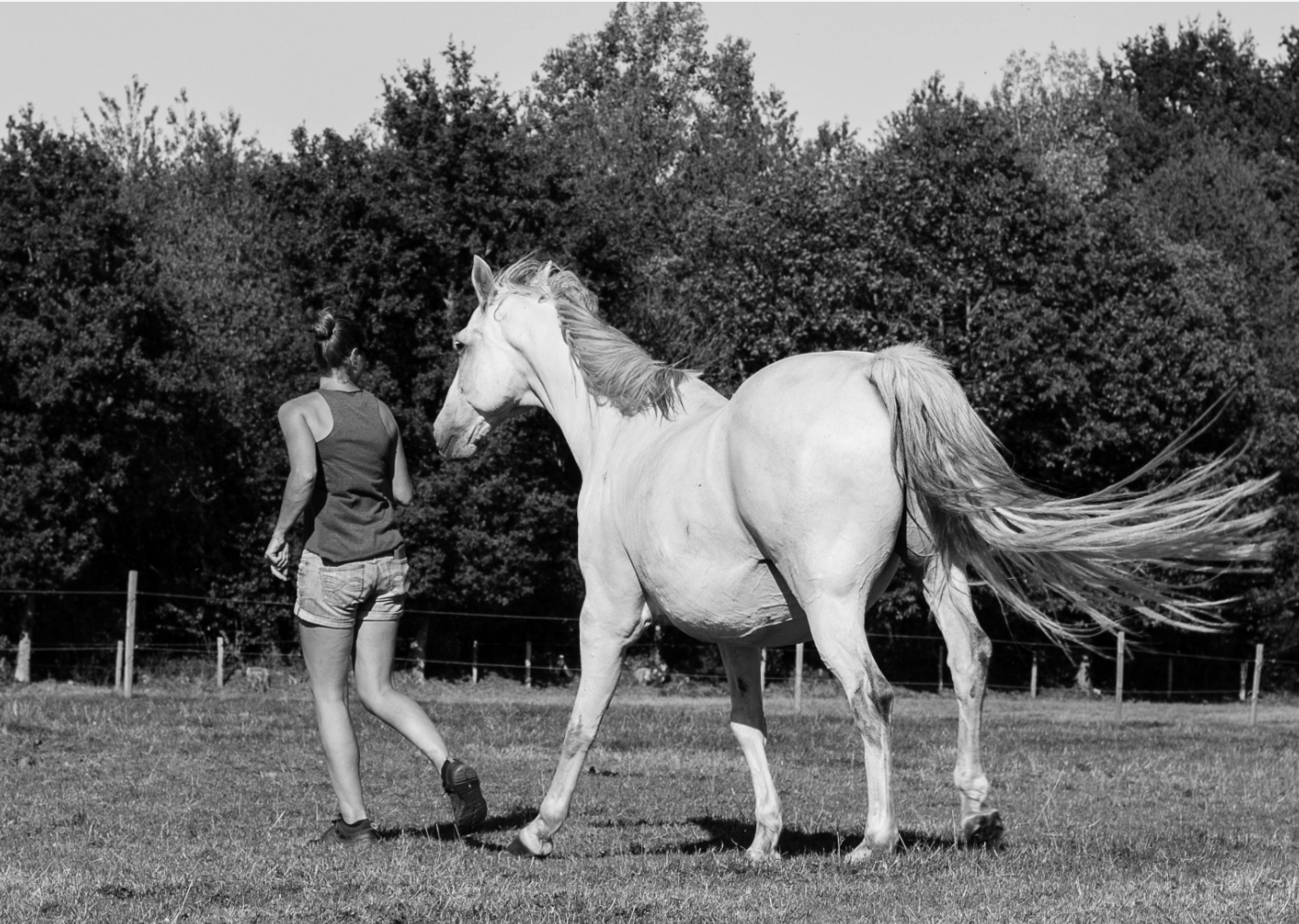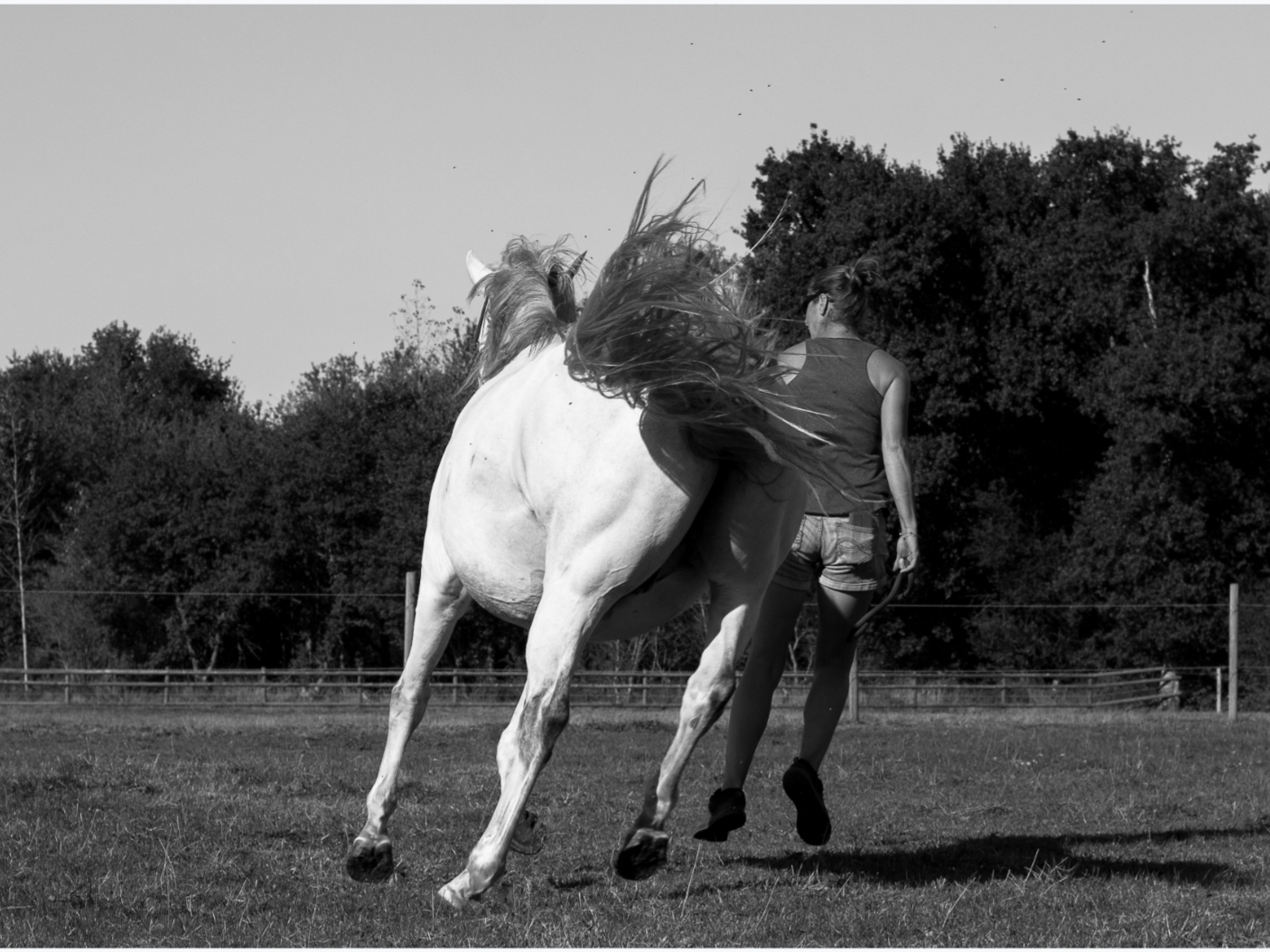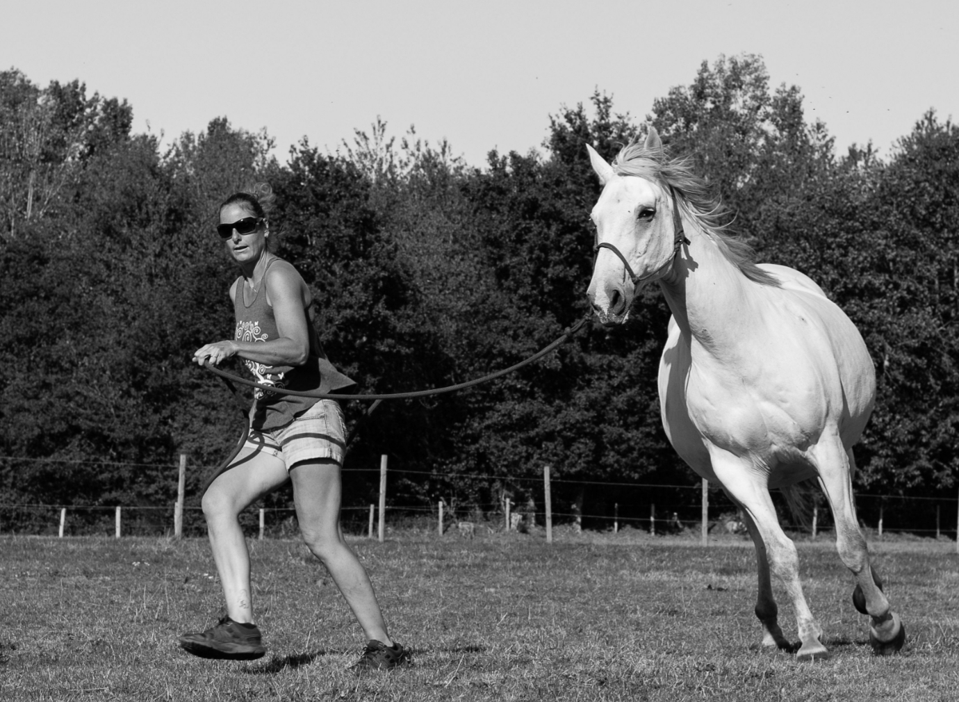 Travail au sol tout d’abord afin d’établir de bonnes bases et les bons codes avant de monter en selle mais aussi pour construire une relation de confiance mutuelle avec votre cheval.Puis travail monté après acceptation de la selle aux 3 allures et différents exercices de souplesse (hanches et épaules) et travail sur le cercle. Davantage selon sa progression. – pension rééducation